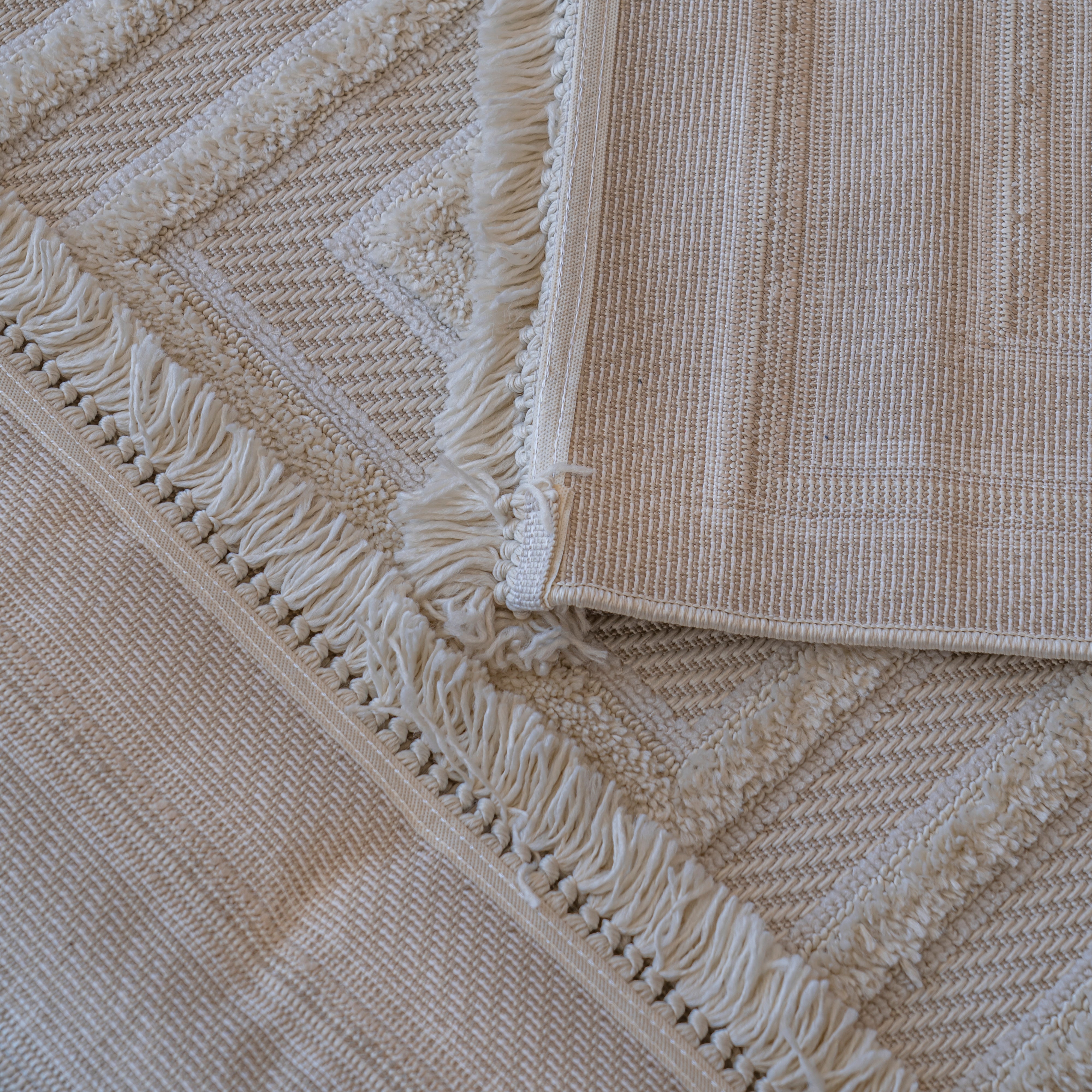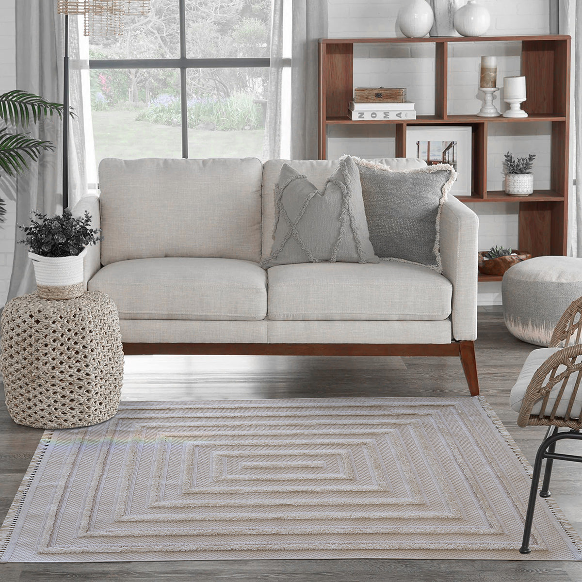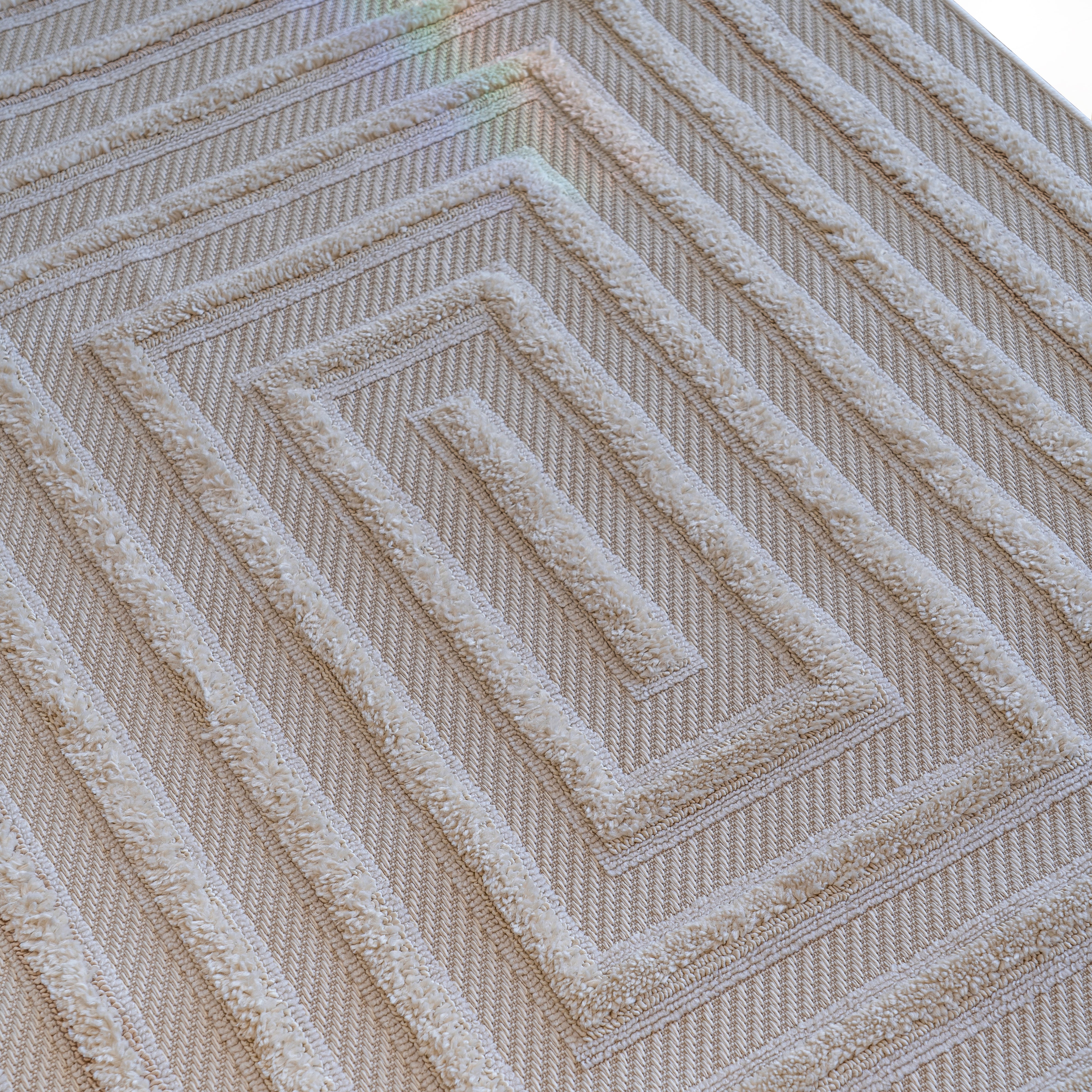استمتع بلمسة من الفخامة الهادئة مع سجاد ميرنا، المصمم بذوق رفيع ليتناغم مع مختلف أنماط الديكور. يتميز بنقشة هندسية أنيقة على شكل مستطيلات متداخلة تضيف عمقًا بصريًا وشعورًا بالاتساع. الألوان المحايدة من البيج والأوف وايت تمنحك حرية التنسيق مع أي أثاث، بينما يضفي النسيج المتنوع بُعدًا ملموسًا يضيف دفئًا وأناقة لكل ركن في منزلك.