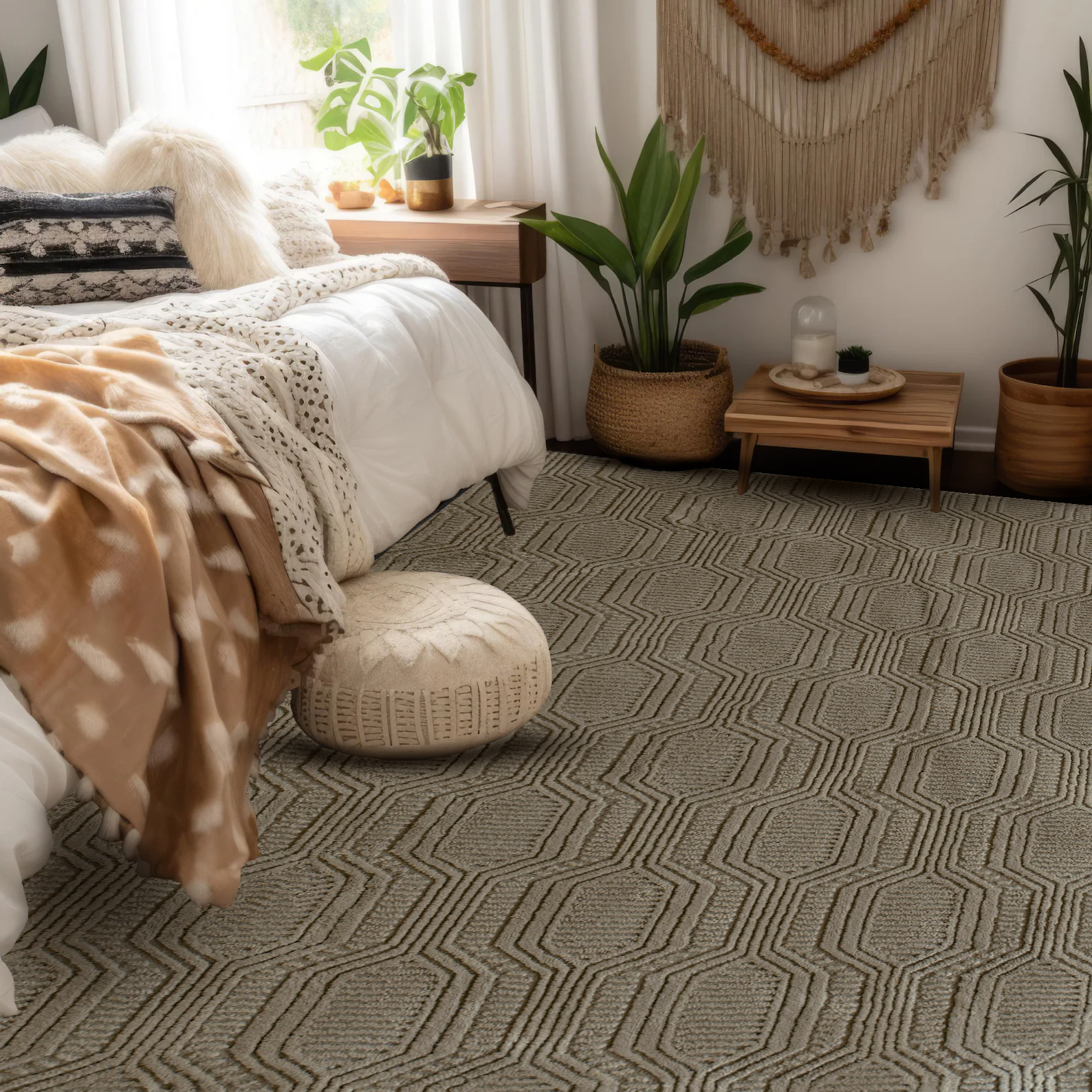 سجاد ساين صنع بعناية من مادة البوليستر، يتميز بتصميم بوهيمي يعتمد على نمط هندسي متكرر مما يخلق تباينا لطيفا، وتعزز من جمال ديكور منزلك، كما يمتاز ب وبر ارتفاعه 11 مم الذي يوفر الراحة والدفء في كل خطوة.